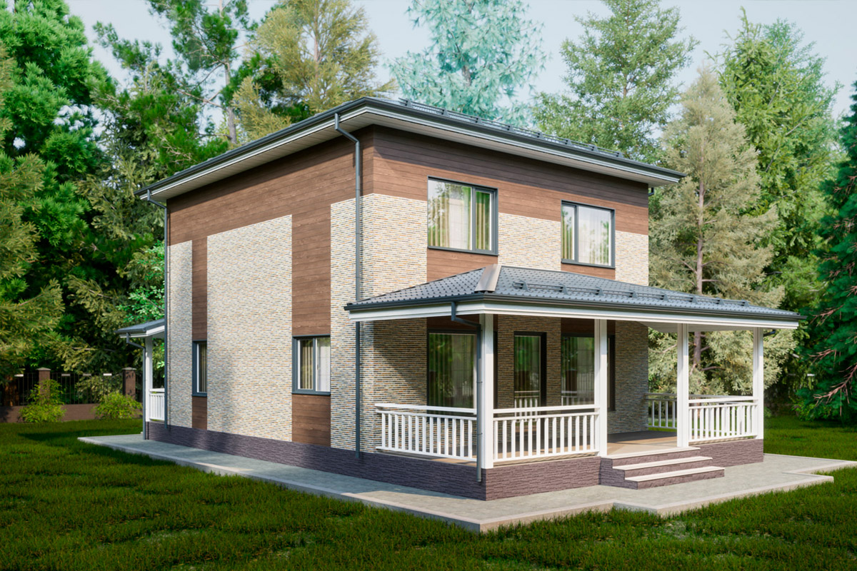 Проект двухэтажного дома возможно возведение из материалов: газобетон, керамический блок или по каркасной технологии, размеры строения 9,5 x 8,125 метров и имеет площадь 154 квадратных метра, спроектирован для комфортного размещения семей с детьми, родственниками или друзьями.
