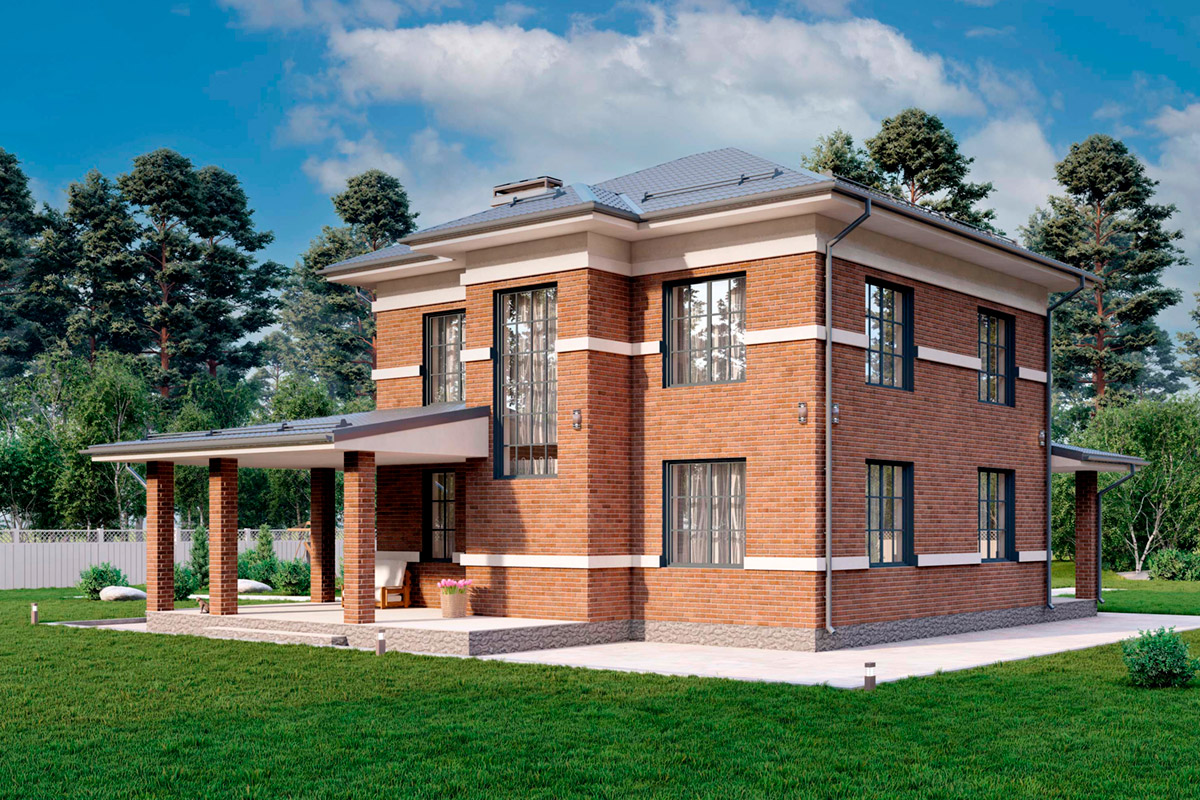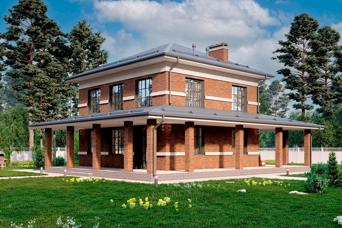 Проект двухэтажного дома возможно возведение из материалов: газобетон, керамический блок или по каркасной технологии, размеры строения 10,15 x 10,1 метров и имеет площадь 190 квадратных метра, спроектирован для комфортного размещения семей с детьми, родственниками или друзьями.