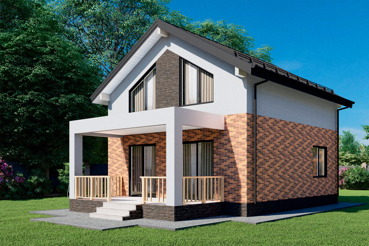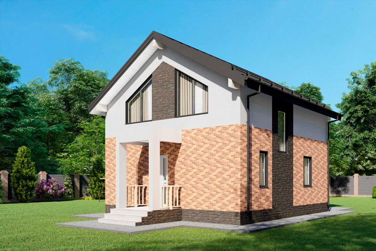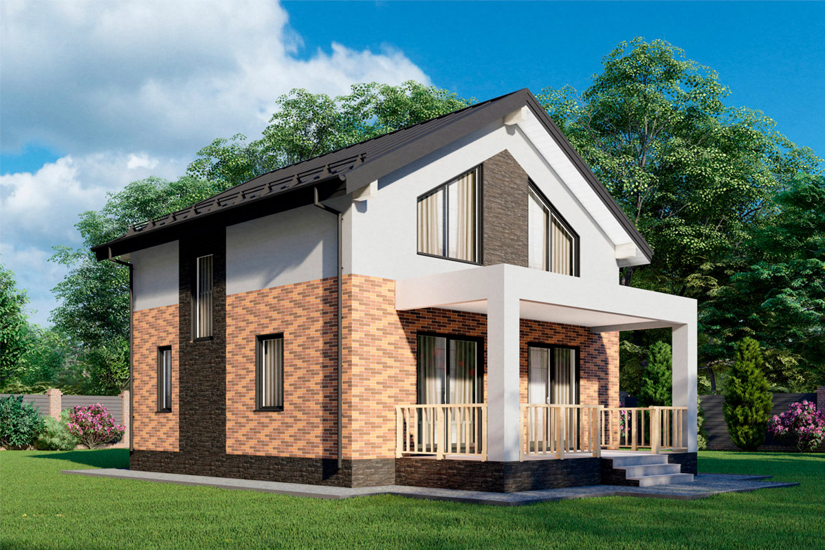 Проект двухэтажного дома возможно возведение из материалов: газобетон, керамический блок или по каркасной технологии, размеры строения 7,8 x 7,5 метров и имеет площадь 117 квадратных метра, спроектирован для комфортного размещения семей с детьми, родственниками или друзьями.